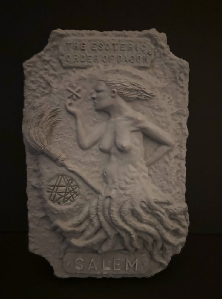 The Salem Chapter of The Esoteric Order of Dagon is a flat back relief resin model kit. It measures approximately 9” tall x 6" wide x 1.5" deep.