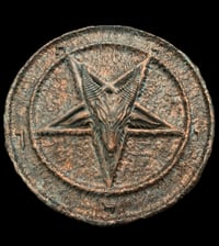 Verdi Copper Sigil of Baphomet is a ready to hang relief resin sculpture, with a painted finish. It measures approximately 11.75" tall x 11.75" wide x 1" deep.